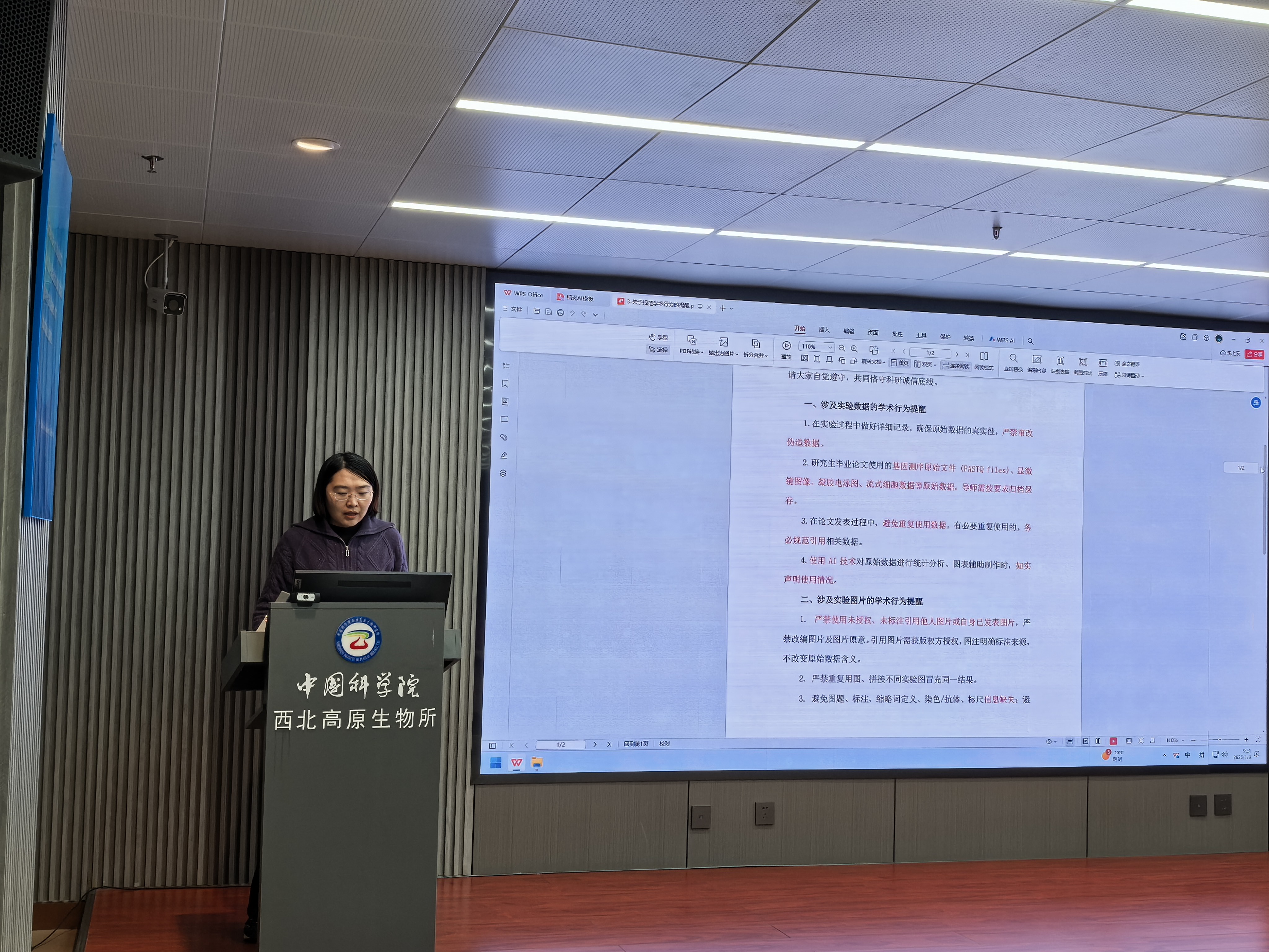 隨后,組織委員兼紀(jì)檢委員李彩霞傳達學(xué)習(xí)了中國科學(xué)院西北高原生物所學(xué)術(shù)委員會《關(guān)于規(guī)范學(xué)術(shù)行為的提醒》,與會人員集體觀看了科研誠信教育視頻《學(xué)術(shù)倫理:青年學(xué)者必須跨越的五條治學(xué)門檻》。