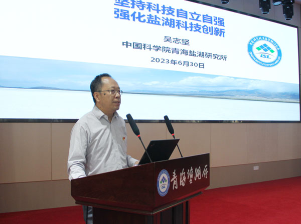 所長(zhǎng)吳志堅(jiān)作了以《堅(jiān)持科技自立自強(qiáng),強(qiáng)化鹽湖科技創(chuàng)新》為題的黨課報(bào)告。報(bào)告從習(xí)近平總書記關(guān)于科技自立自強(qiáng)的重要論述、習(xí)近平總書記關(guān)于鹽湖保護(hù)利用和鹽湖產(chǎn)業(yè)發(fā)展的重要指示、強(qiáng)化鹽湖科技創(chuàng)新三個(gè)方面闡述了學(xué)習(xí)貫徹習(xí)近平新時(shí)代中國(guó)特色社會(huì)主義思想,特別是關(guān)于科技創(chuàng)新的系列重要論述對(duì)于鹽湖科技創(chuàng)新工作和鹽湖產(chǎn)業(yè)高質(zhì)量發(fā)展的重要指導(dǎo)意義。要求全所黨員干部及研究生要深感新時(shí)代責(zé)任使命擔(dān)當(dāng),進(jìn)一步聚焦主責(zé)主業(yè),弘揚(yáng)科學(xué)家精神,傳承和發(fā)揚(yáng)鹽湖精神,以實(shí)際行動(dòng)推動(dòng)鹽湖國(guó)重建設(shè)的各項(xiàng)工作,扎實(shí)推進(jìn)鹽湖科技創(chuàng)新高質(zhì)量發(fā)展。?