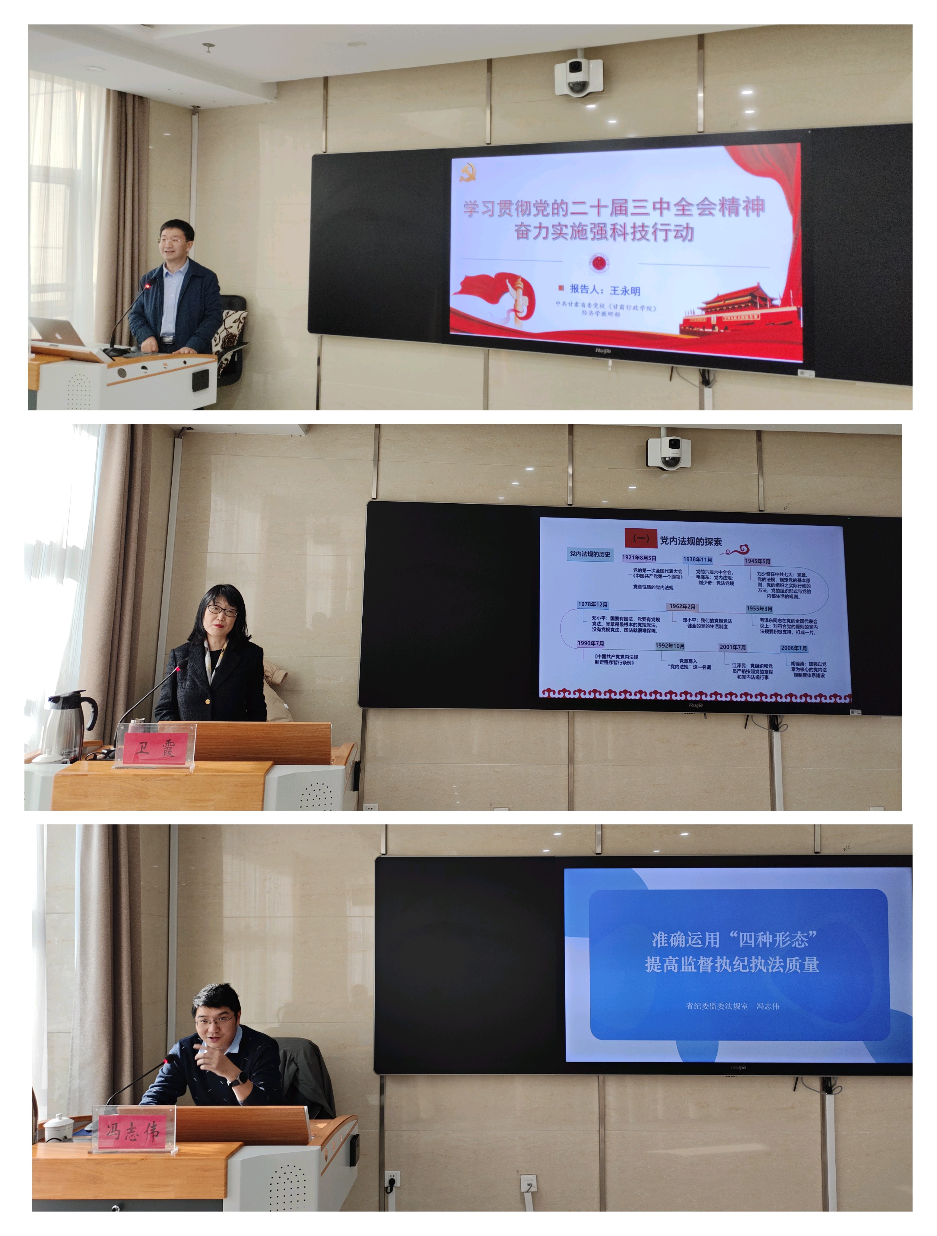 此次培訓(xùn)結(jié)合工作實際設(shè)置了三場專題報告、三場經(jīng)驗分享和兩次警示教育。中共甘肅省委黨校(甘肅行政學(xué)院)王永明副教授和衛(wèi)霞教授,分別作題為《學(xué)習(xí)貫徹黨的二十屆三中全會精神 奮力實施強科技行動》和《監(jiān)督執(zhí)紀(jì)相關(guān)黨內(nèi)法規(guī)解讀》專題報告;甘肅省紀(jì)委監(jiān)委法規(guī)室馮志偉作題為《準(zhǔn)確運用監(jiān)督執(zhí)紀(jì)“四種形態(tài)”》專題報告。