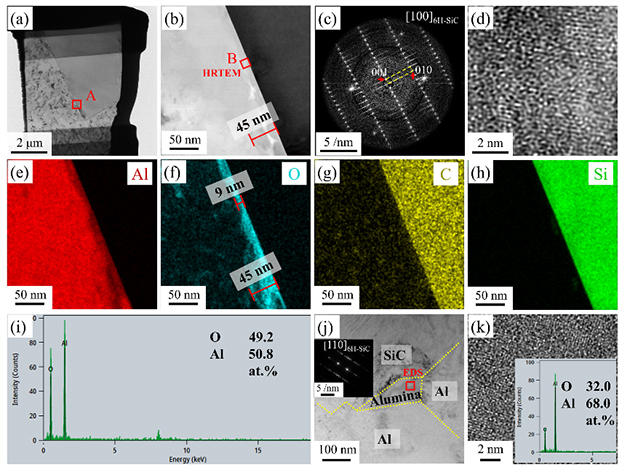 圖2.非晶氧化鋁界面改性的SiC顆粒增強(qiáng)鋁基復(fù)合材料